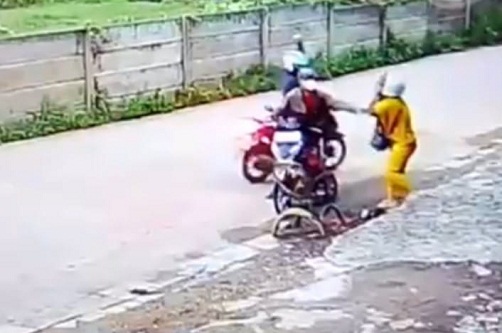 Aksi begal terhadap seorang wanita terekam kamera pengawas CCTV di Jalan Dentjik Asaari, Kelurahan Talang Kelapa, Kecamatan Alang-alang Lebar, Palembang pada Selasa (7/10/2025).