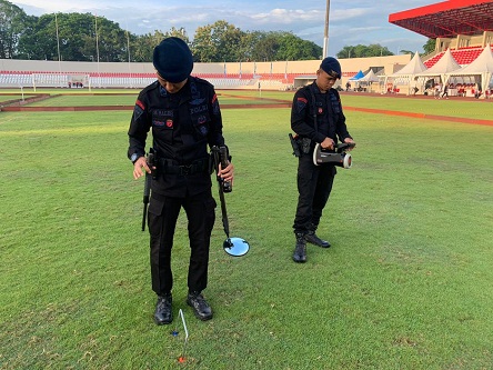 Tim Den Gegana Satbrimob Polda Sumsel Unit 1 dan Unit 2 melaksanakan sterilisasi disejumlah titik strategis, meliputi Pitstop Xiom Table Center Kalidoni (tenis meja), Sekolah Harapan Palembang (basket), Lapangan Bumi Sriwijaya (gate ball), Kebon Gede Badminton Hall (bulutangkis), Hotel Beston (catur).