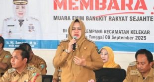 Muara Enim, JN Wakil Bupati (Wabup) Muara Enim Ir Hj Sumarni MSi sehari berkantor di Desa Pelempang Kecamatan Kelekar dalam rangka melaksanakan program “Bunga Desa”, yakni Bupati dan Wakil Bupati Ngantor Di Desa, Selasa (9/9/2025). Selain menyerap aspirasi masyarakat yang menjadi fokus utama, Wabup disambut hangat oleh ratusan masyarakat juga …