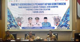Palembang, JN Provinsi Sumatera Selatan (Sumsel) terus mematangkan persiapan sebagai tuan rumah Pekan Olahraga Nasional (Pornas) XVII Korps Pegawai Republik Indonesia (Korpri) Tahun 2025. Sekretaris Daerah (Sekda) Sumsel, Drs. H. Edward Candra MH, memimpin rapat koordinasi bersama kontingen dan manajer cabang olahraga (cabor) di Auditorium Graha Bina Praja, Selasa (2/9/2025). …