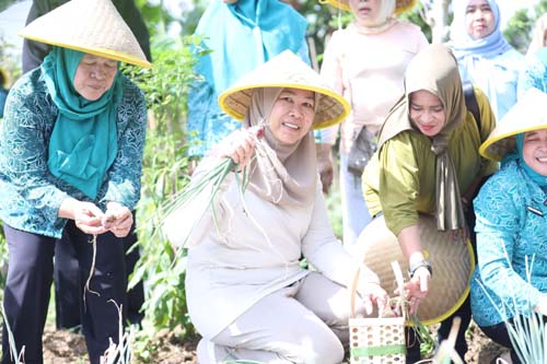 Ketua TP PKK Sumsel, Febrita Lustia Herman Deru, bersama Ketua TP PKK Kota Palembang, Dewi Sastrani, hadir langsung dalam kegiatan tersebut. Mereka memanen hasil pertanian bersama Kelompok Wanita Tani (KWT) Mulya Sejahtera Bersama dan Dasawisma setempat.