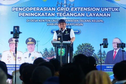 Gubernur Sumatera Selatan, H. Herman Deru, meresmikan pengoperasian Grid Extension untuk peningkatan tegangan layanan listrik di Desa Kenten Laut, Kabupaten Banyuasin, Selasa (28/4/2026).