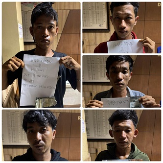Kelima tersangka diketahui masing-masing inisial P (30), H (26), N (26), R (26), dan F (20), seluruhnya warga Kecamatan Pemulutan, Kabupaten Ogan Ilir.