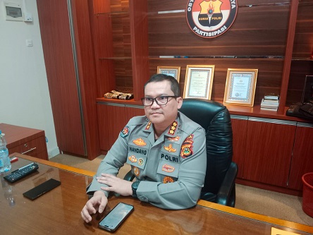 Kabid Humas Polda Sumsel, Kombes Pol Nandang Mu’min Wijaya saat diwawancara media.(Foto-pahmi/jn)