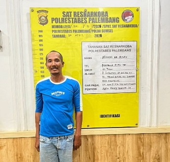 Satresnarkoba Polrestabes Palembang menangkap seorang pengedar narkoba berinisial W (44) di kawasan Jalan Sugiwaras, Kecamatan Sukarami, Senin (20/4/2026).