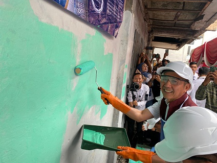 Dalam hal ini, pengecatan gedung terfokus di Simpang Charitas, tepatnya di bangunan bekas Rumah Makan Sari Bundo, Rabu pagi (13/8/2025).