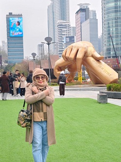 Prof. Hj. Isnawijayani, M.Si., Ph.D saat di Patung Gangnam Style. (Foto-Istimewa)