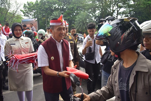 Pada Rabu (13/8/2025), Walikota Palembang Drs H Ratu Dewa MSi bersama Wakil Walikota Prima Salam (RDPS) memimpin langsung pembagian 3.000 lembar bendera merah putih kepada masyarakat pengguna jalan.