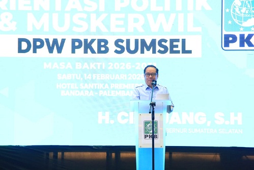 Wakil Gubernur Sumatera Selatan (Sumsel), H. Cik Ujang, menghadiri Pengukuhan Pengurus dan Musyawarah Kerja Wilayah (Muskerwil) Dewan Pengurus Wilayah (DPW) Partai Kebangkitan Bangsa Sumsel masa bakti 2026–2031. Kegiatan tersebut digelar di Hotel Santika Premiere Palembang.